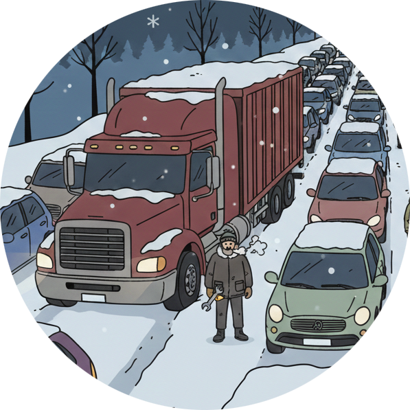 雪道で車が立往生した。