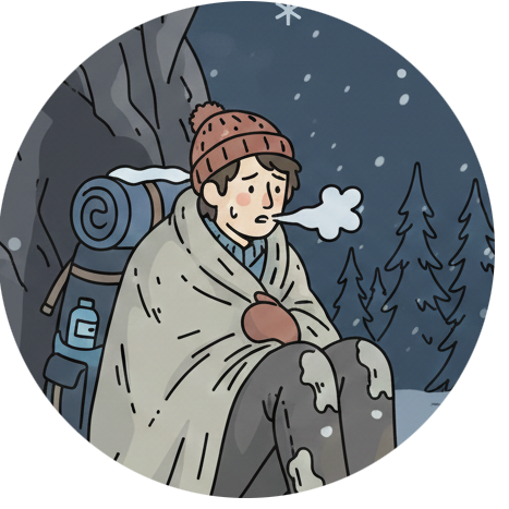 登山中、予想以上の寒さと悪天候で動けない。救助がくるまでの間、寒さをしのがなくてはいけない。