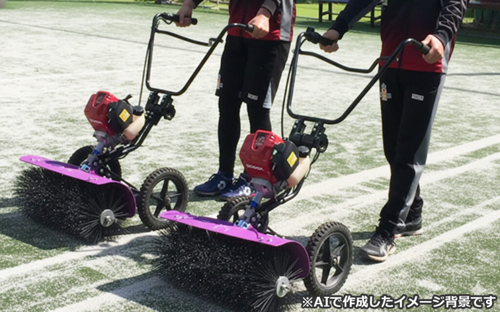 HONDA製エンジンを搭載しているので、コンセントが不要で場所を問わずにどこでも安定したパワーを発揮します。コート使用後など日々のメンテナンスとしてはもちろん、人工芝敷設時の充填材(砂やゴムチップ)のならし作業にも最適です。